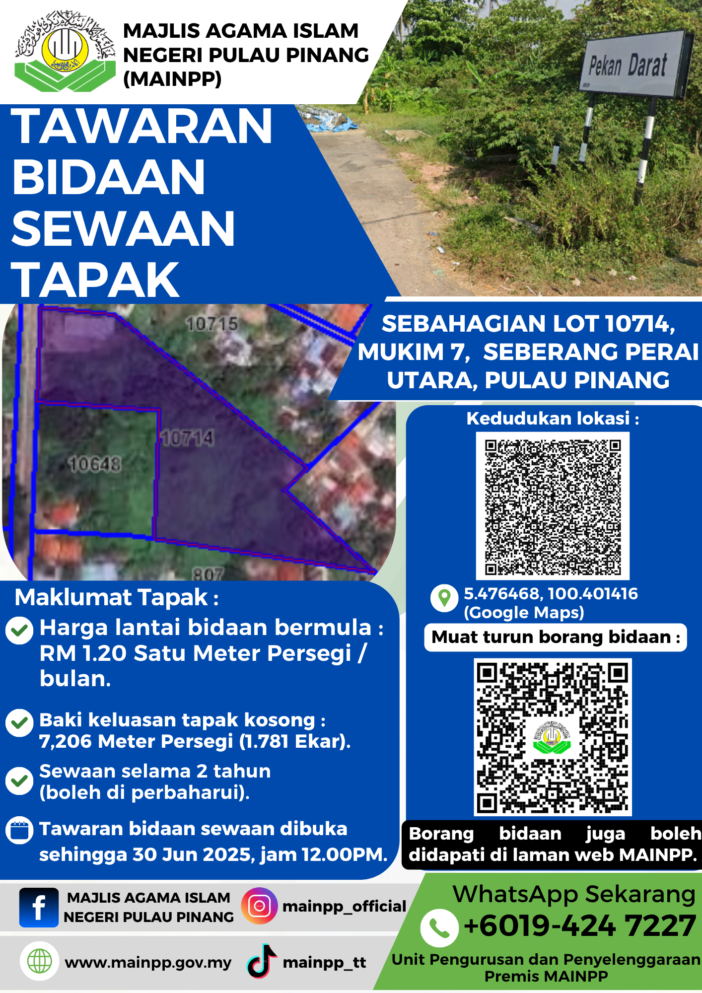 Iklan Tawaran Bidaan Sewaan Tapak Sebahagian Lot 10714 Mukim 7 Daerah Seberang Perai Utara